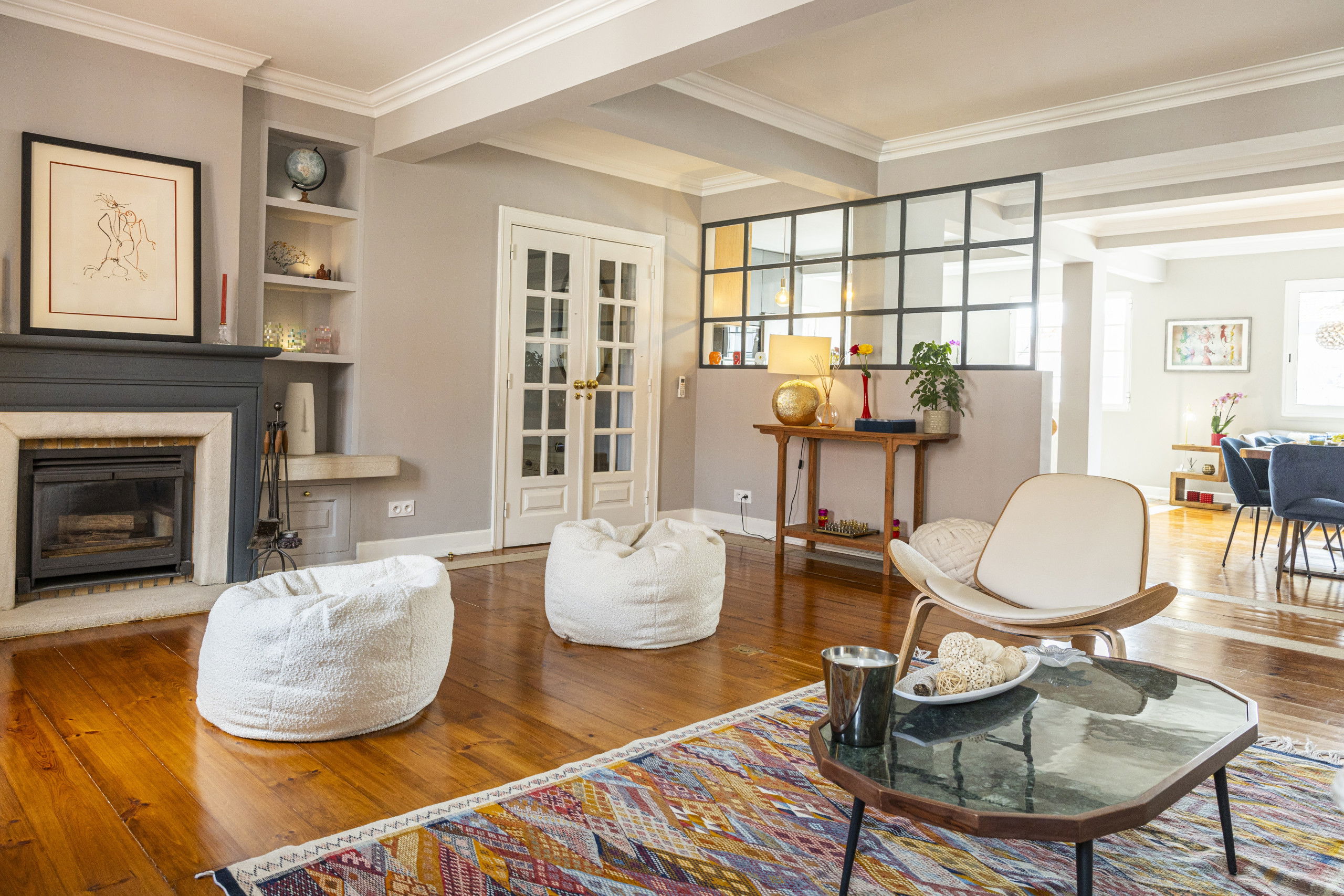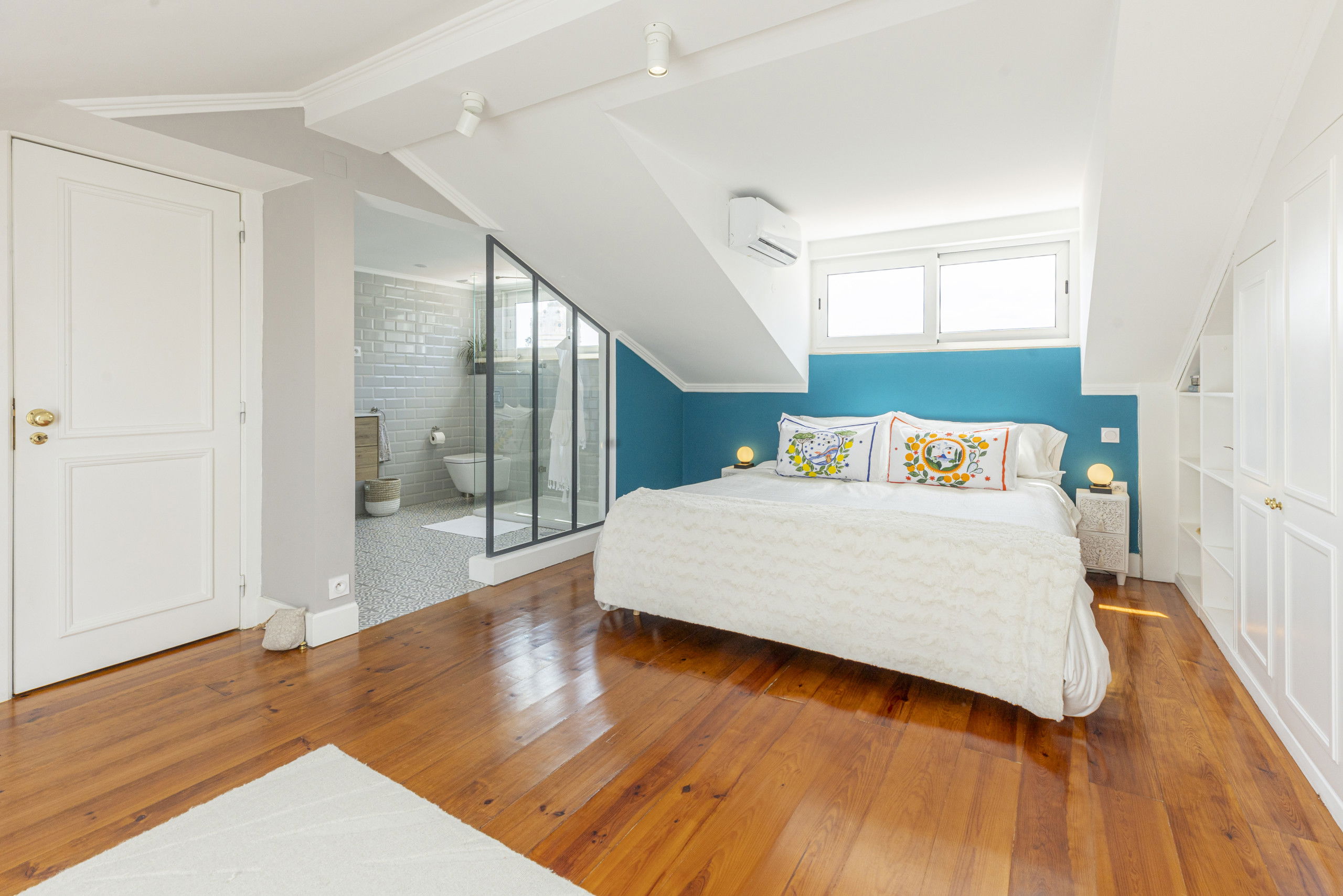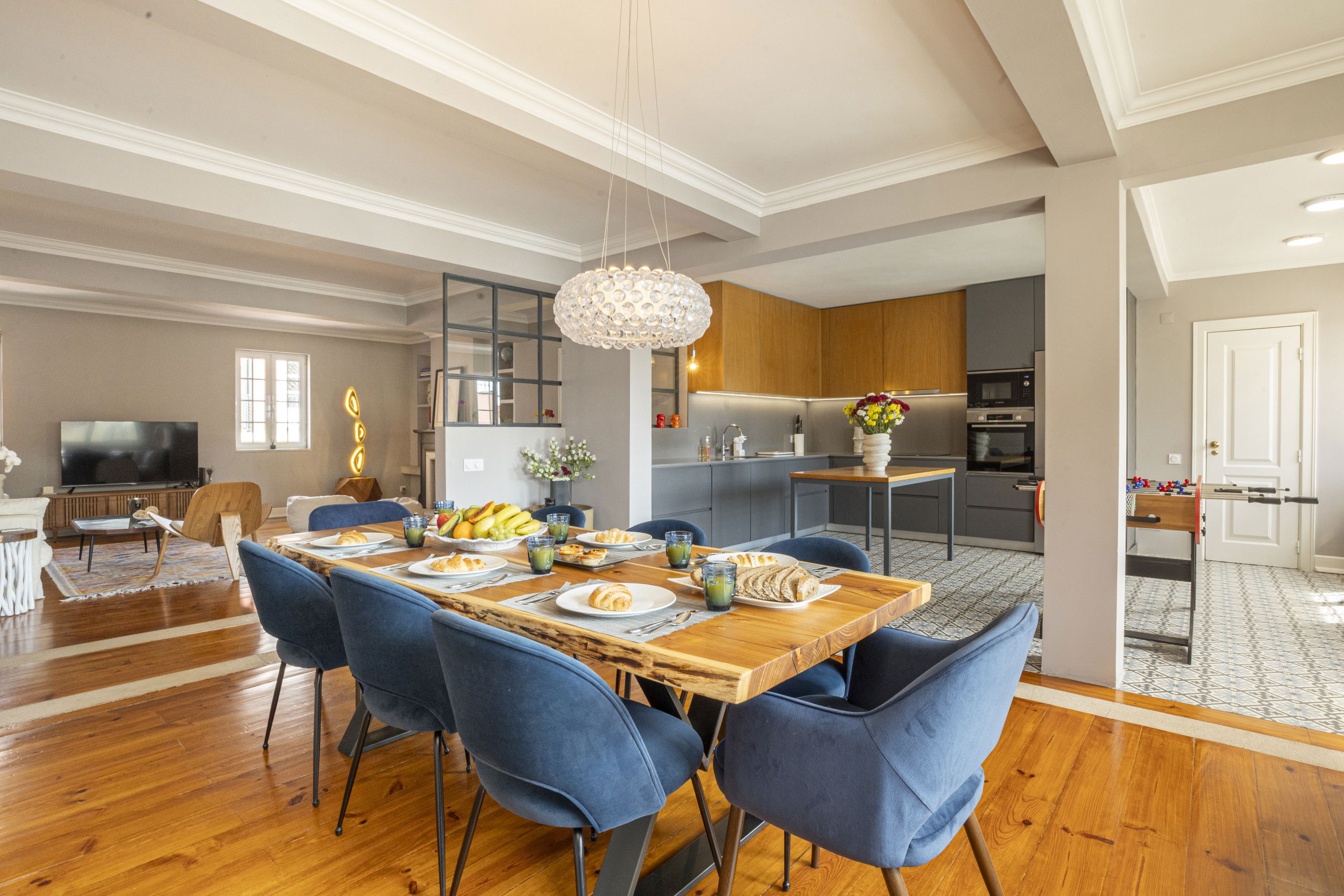 The kitchen is newly fitted with all mod cons, and stunning Portuguese tiles as flooring. The interior design is light and contemporary chic, with original details maintained like the wooden flooring and french style doors throughout.