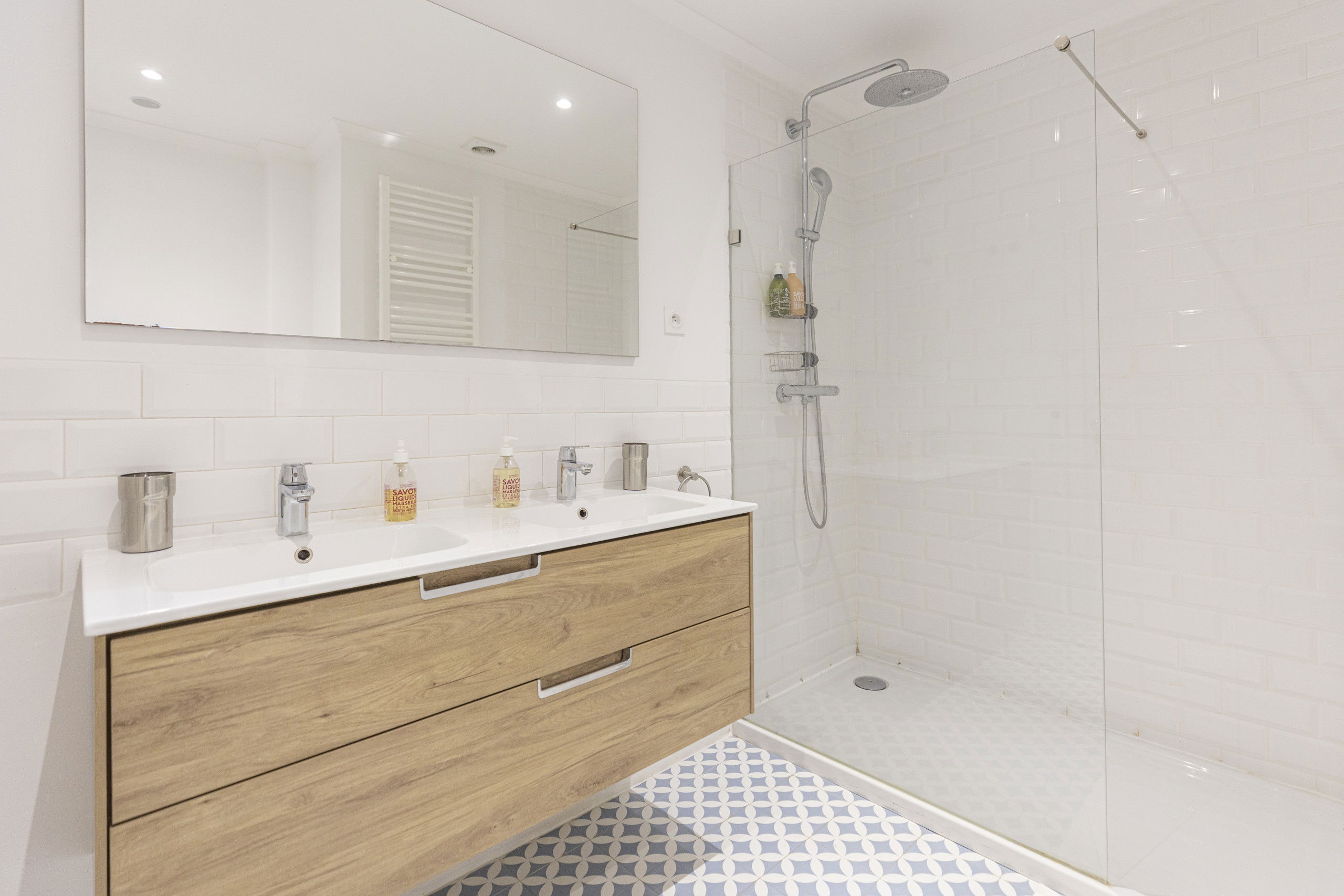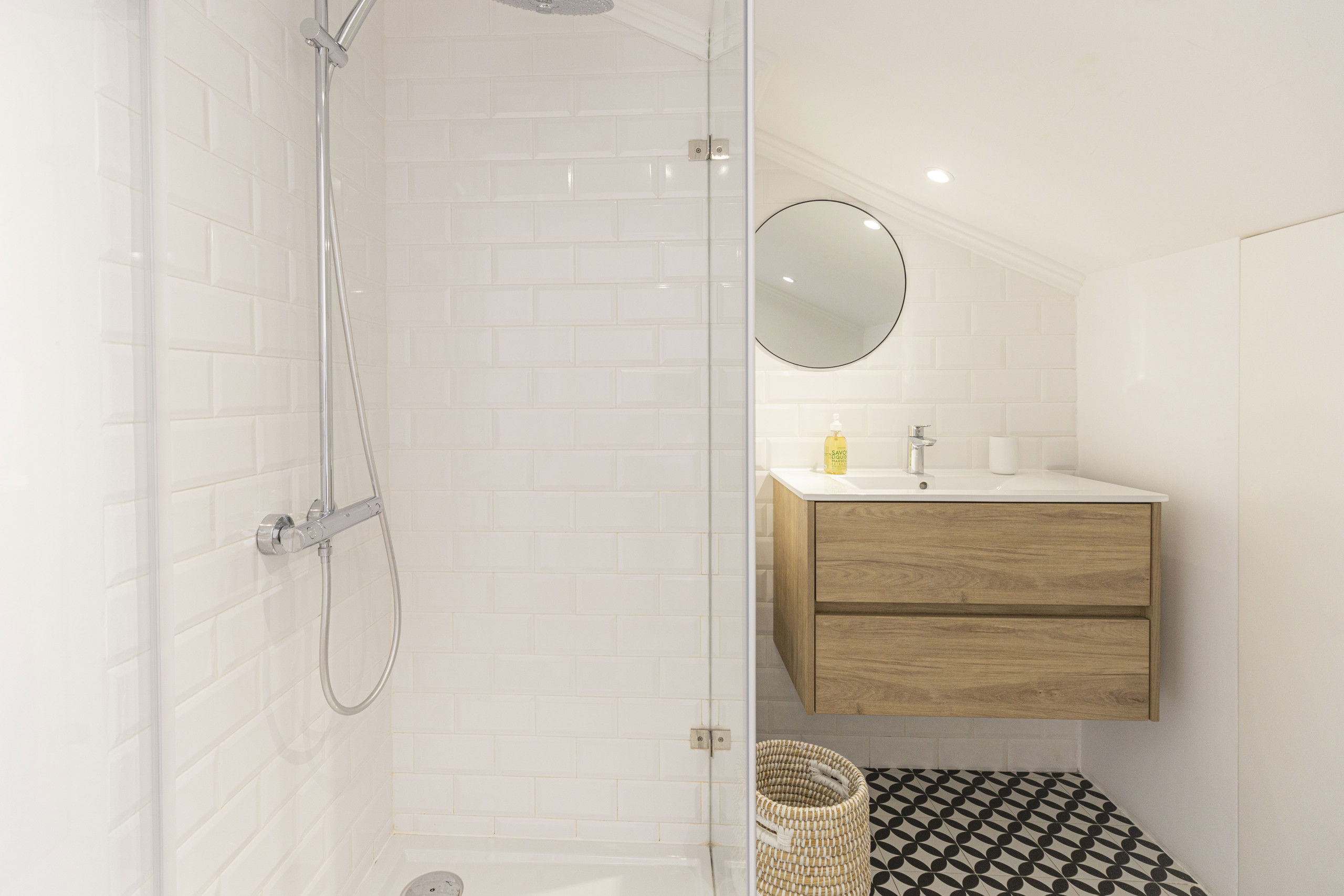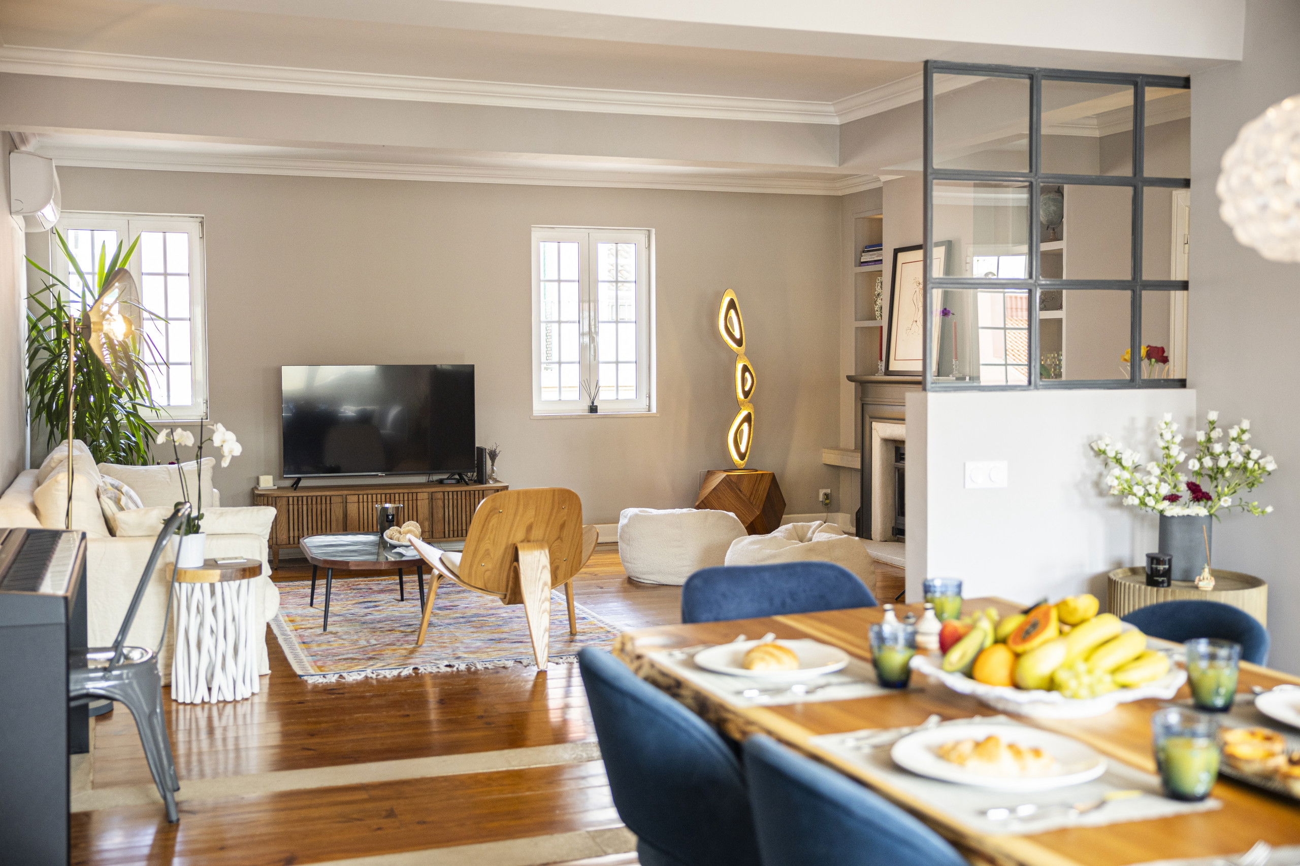 The kitchen is newly fitted with all mod cons, and stunning Portuguese tiles as flooring. The interior design is light and contemporary chic, with original details maintained like the wooden flooring and french style doors throughout.