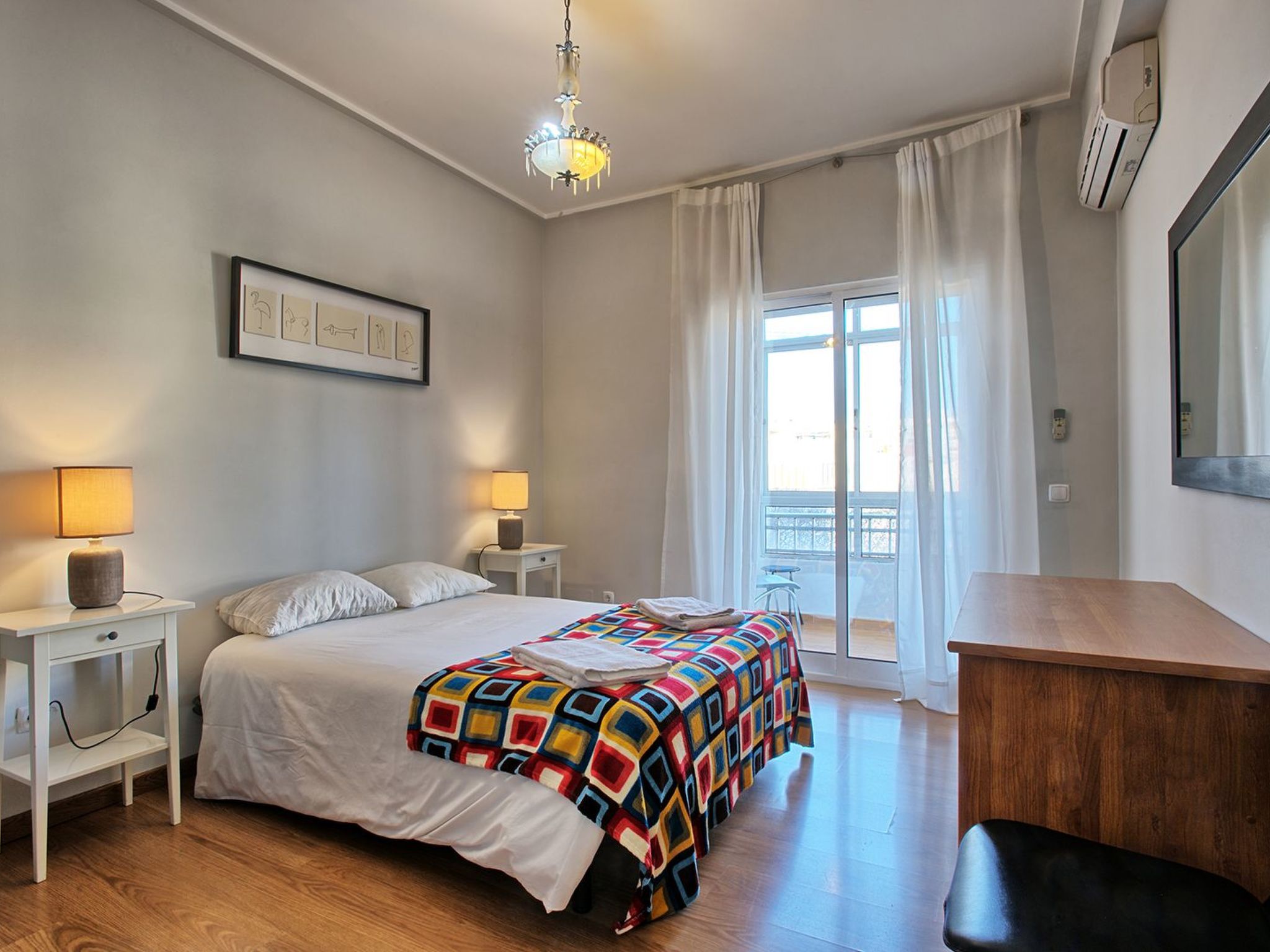 Inside, the apartment is configured to comfortably accommodate up to 8 guests, ensuring ample space for everyone. It comes equipped with all the essentials to make your stay as convenient as possible, including two bathrooms—one with a shower and the other with a bathtub—for those soothing soaks after a day exploring. The presence of a washing machine for sole use adds a touch of home convenience, making it easy to keep beachwear and vacation attire fresh. Two fans ensure the indoor climate remains pleasant, even on the warmer days. For coffee enthusiasts, the filter coffee machine, along with the electric kettle and dishwasher, rounds off a kitchen that’s designed for ease and functionality.