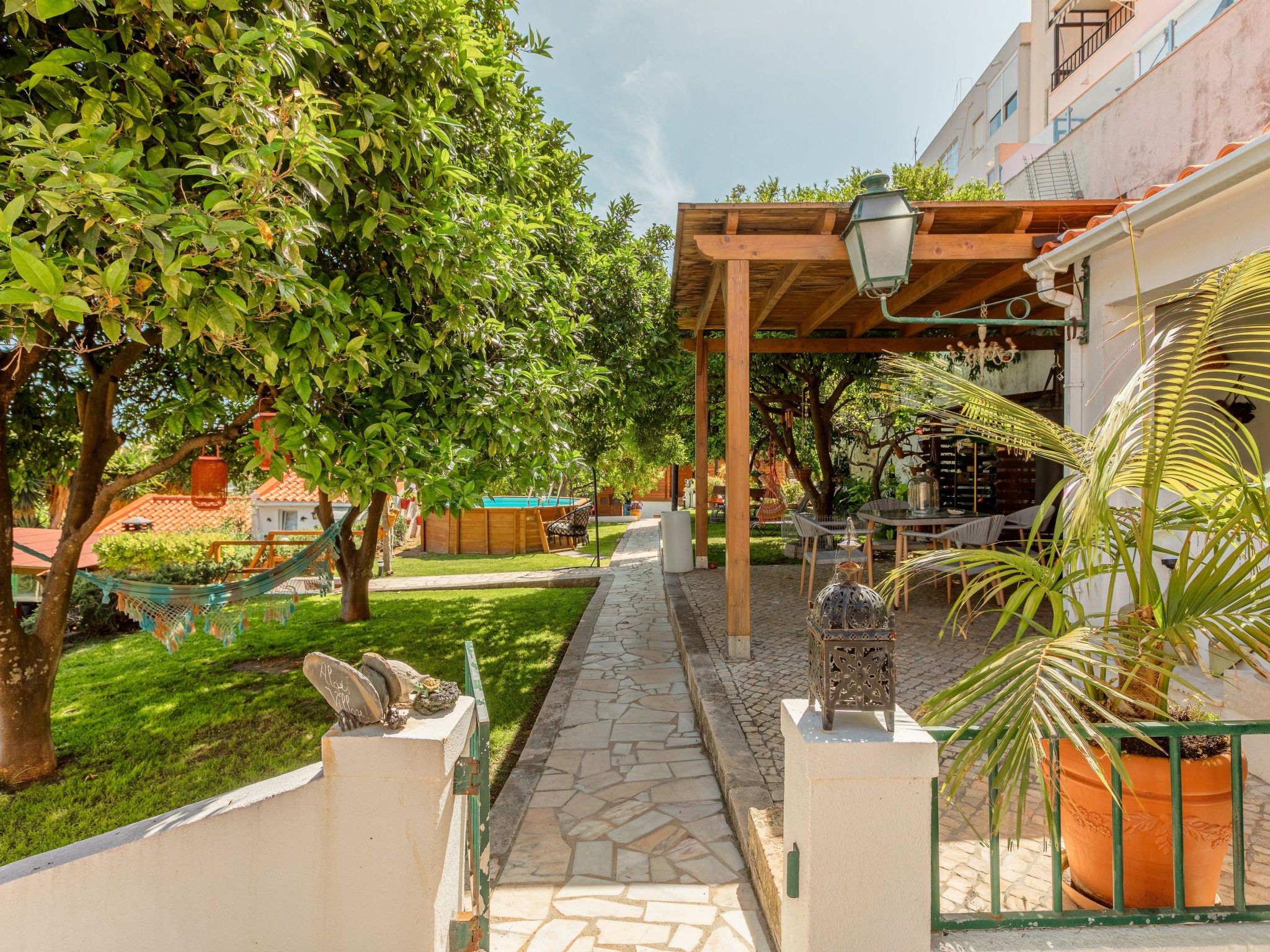 the Tagus River. If you are looking for a quieter spot, use one of the lower terraces with citrus fruit trees and a hammock.